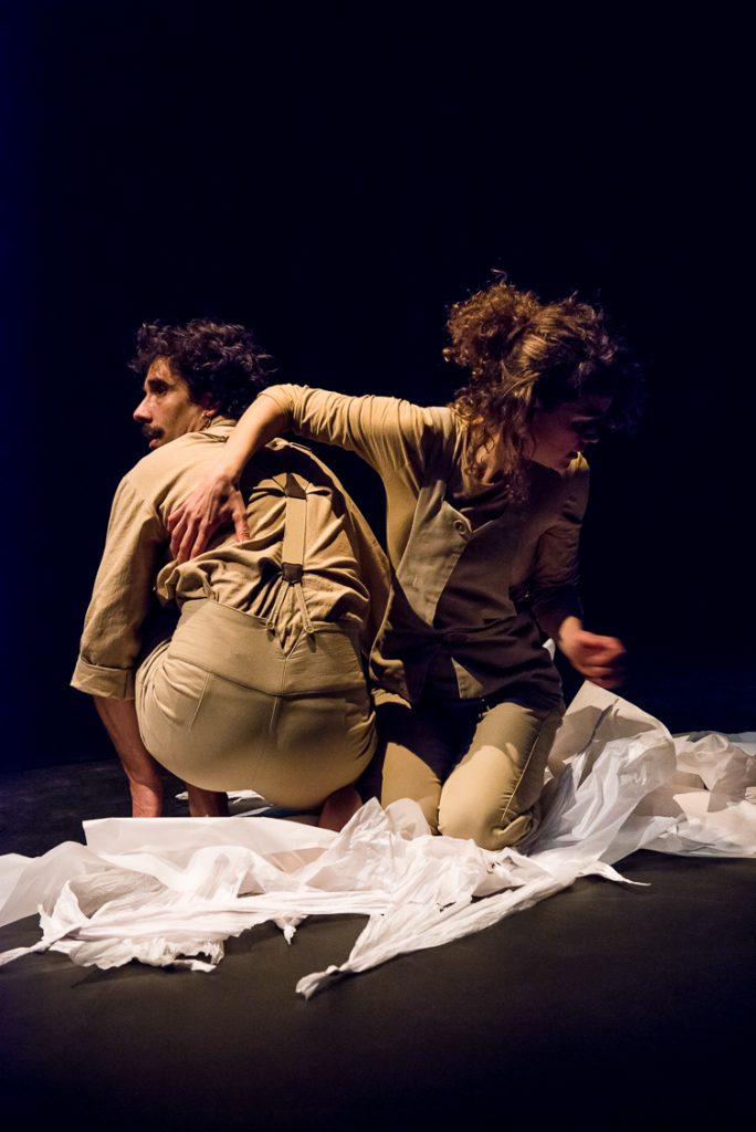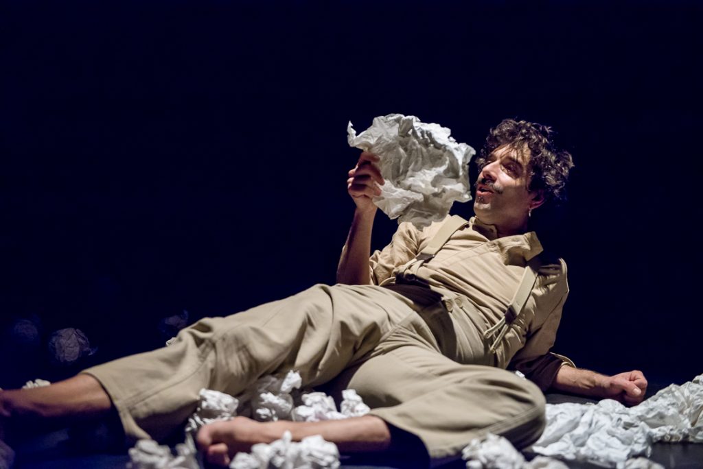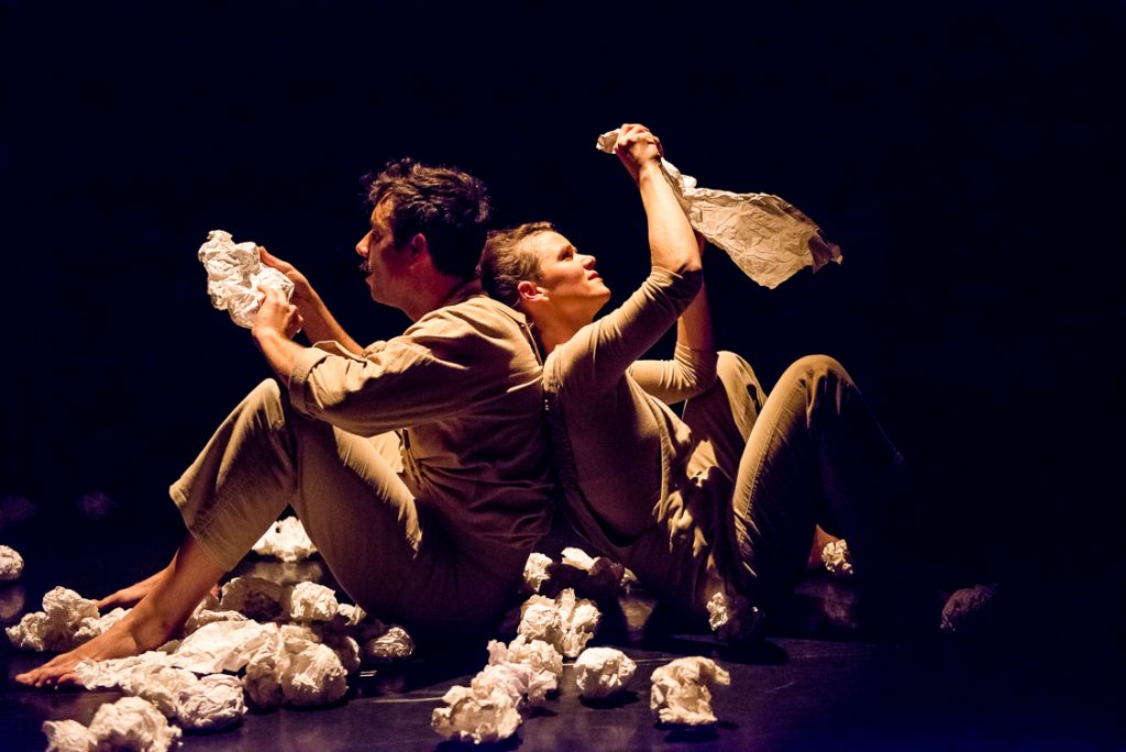 Conception des costumes pour quatre comédien-nes et un technicien. La recherche de formes s’est inspirée du courant constructivisme au théâtre, pour relier l’objet papier à la matière humaine protagoniste. Étape suivante : réalisation des costumes en collaboration avec, et par les ateliers costumes du théâtre de Grenoble.